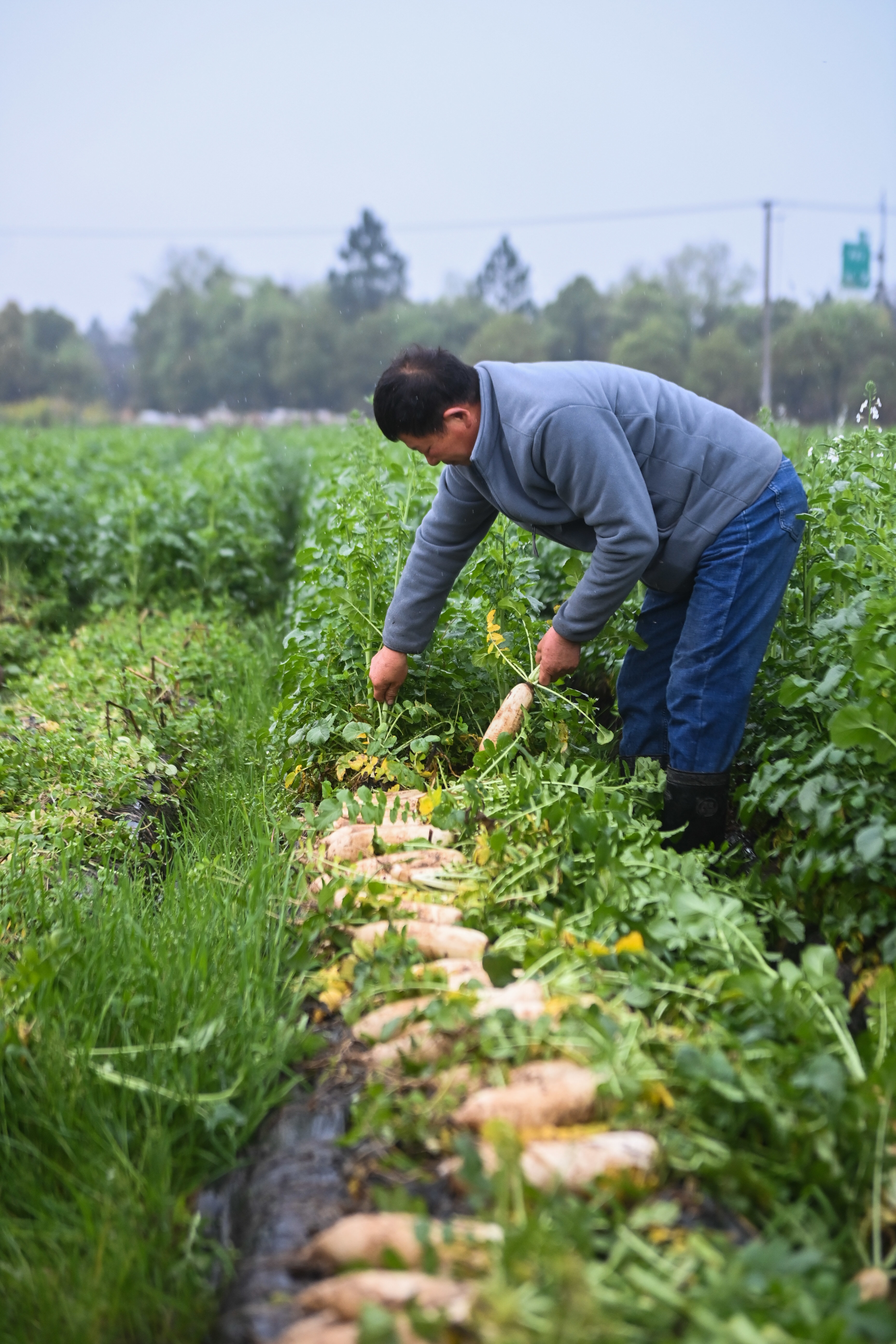 3月23日,种植户在基地内采收萝卜。 新华社记者 徐昱 摄