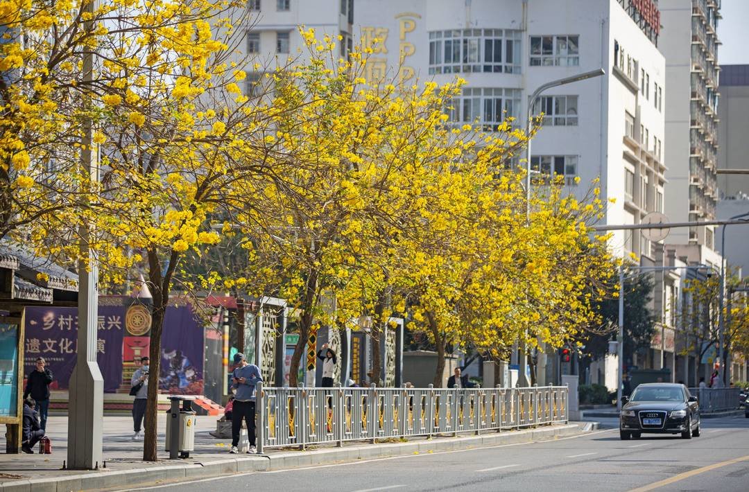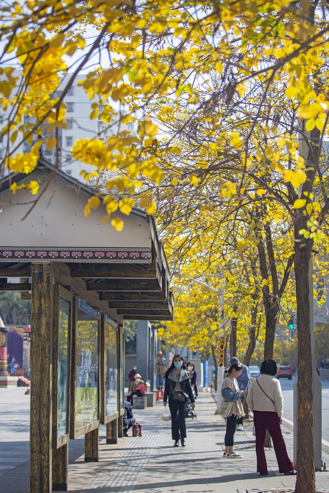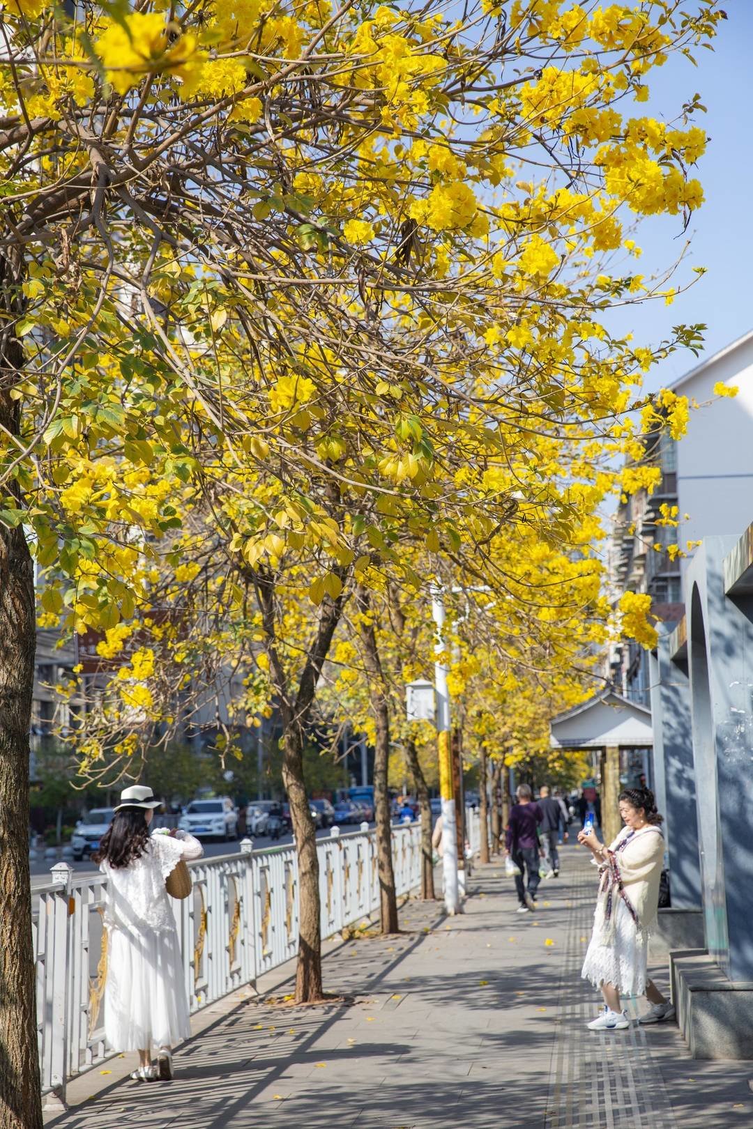 春日里,黄花风铃木惊艳登场,让西昌的街道上“尽带黄金甲”