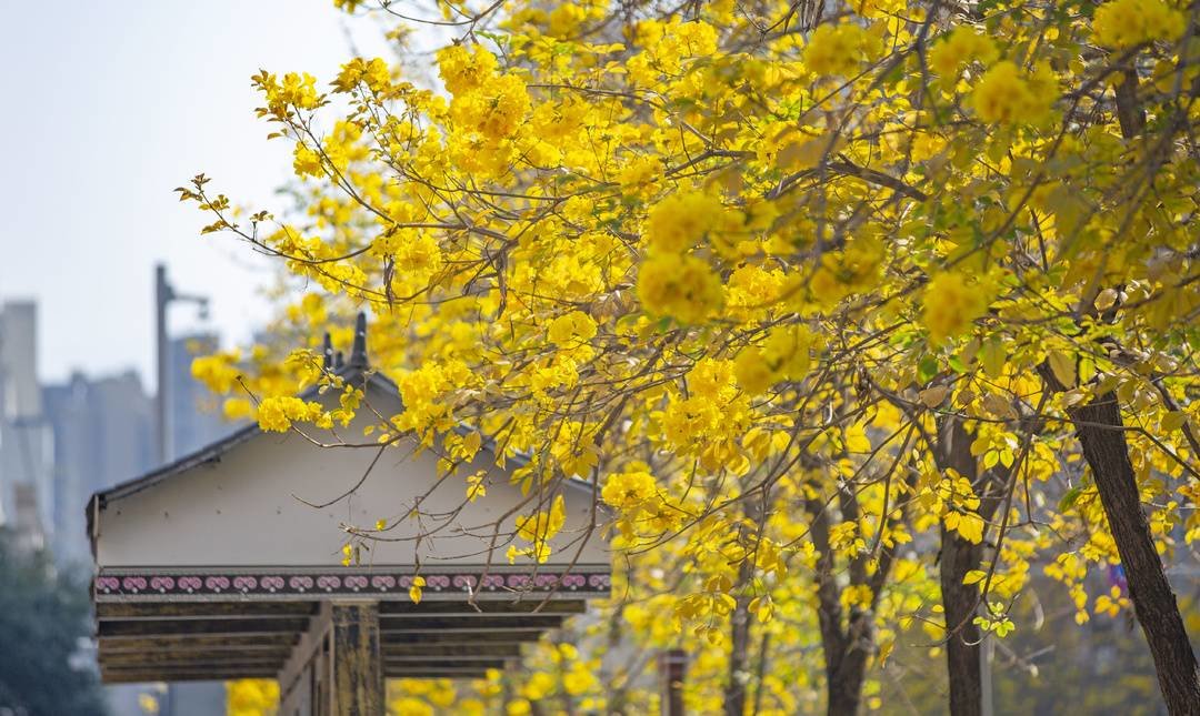黄花风铃木挂满枝头,用一片金黄点亮整个春日