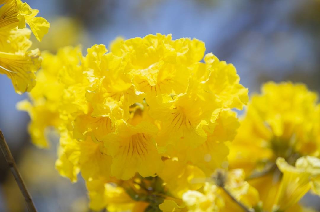 清风拂过,黄花风铃木摇曳枝头,生动活泼