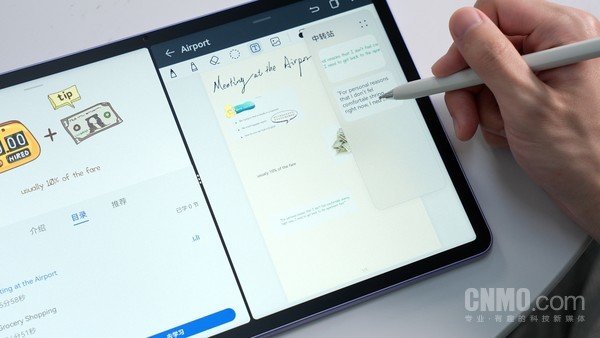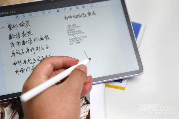 在书写上,同样是有惊喜的,正是因为纸感柔光屏表面的纳米级纹理结构,与HUAWEI M-Pencil(第二代)搭配使用,会产生恰好的阻尼感和振动感,所以当手写笔在屏幕上写字的时候,会有“沙沙”声,不会出现打滑、不跟手的情况。写多了之后,你就会发现这种写字的感觉很奇妙,你会比以前更愿意在平板上写字了。当然,这与手写笔也有很大关系,全新升级的HUAWEI M-Pencil(第二代)具备尼龙弹性体笔尖,时延也低至2ms,与这块屏幕相遇的时候,自然不会打滑和不跟手。