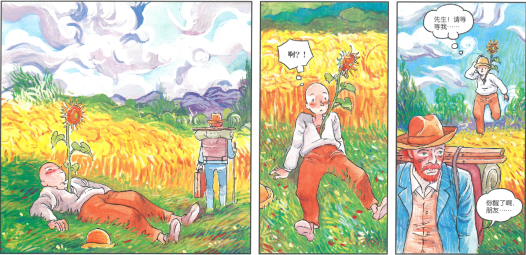 “行画”画家布雷非常受挫,丧气询问原因,少年告诉他:“我永远只为被生命的美好景象感动瞬间而画画,向日葵长在每个人的心中,只是有人没有看见它。”