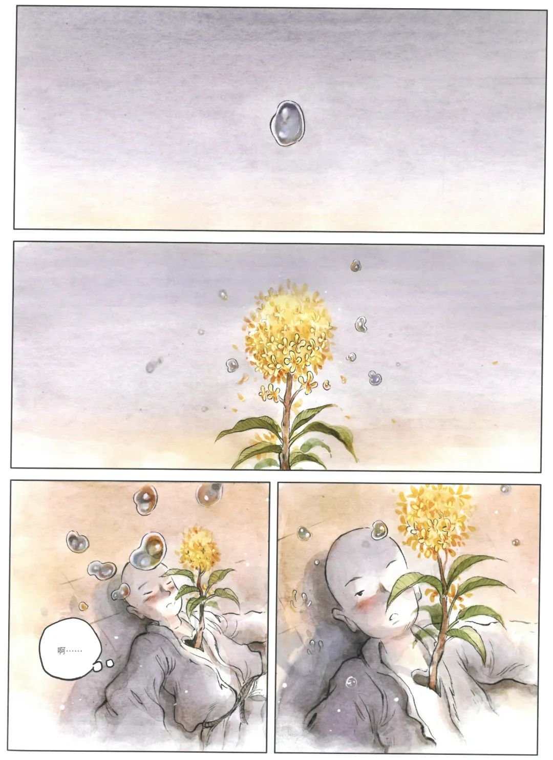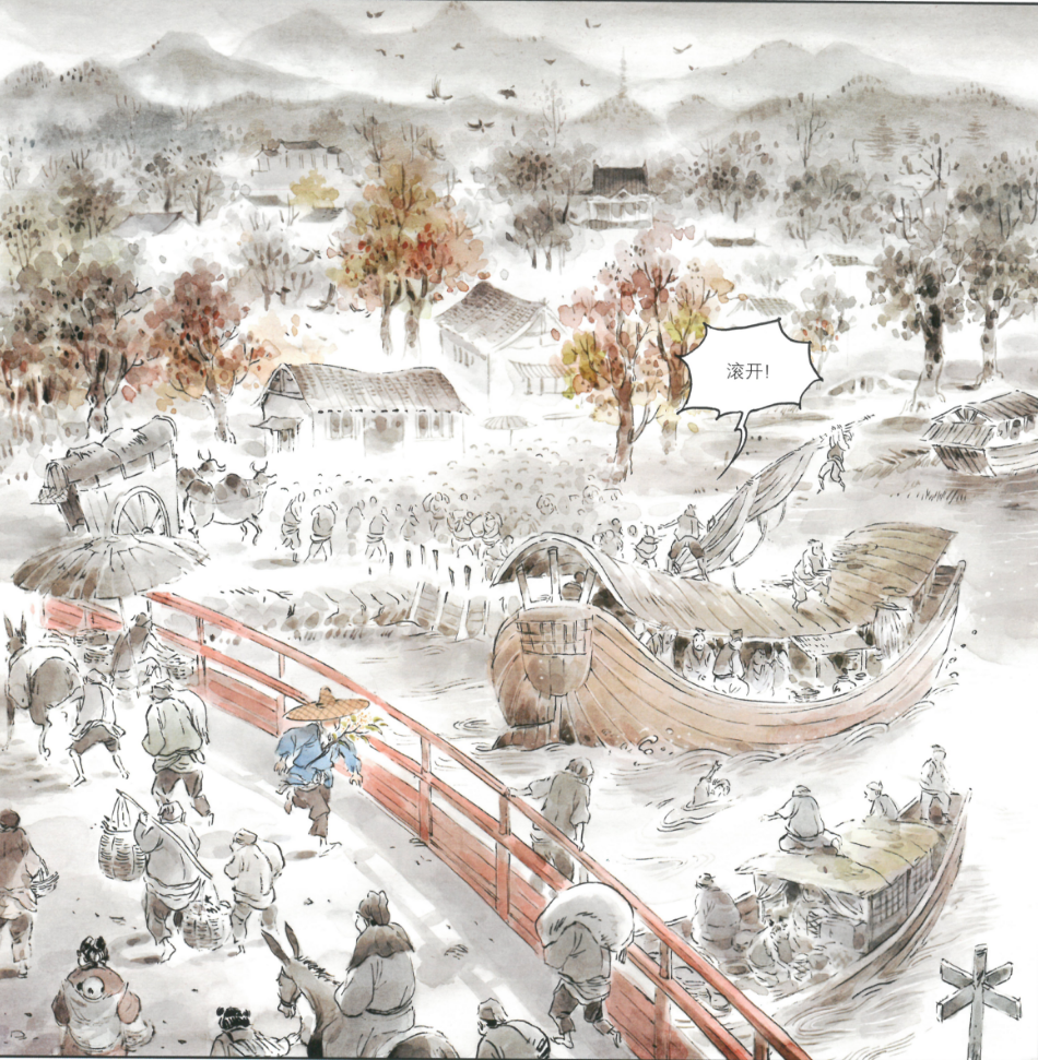 以南宋杭州为背景的《桂花男孩》,画风参考宋画,烟波飘渺的江南小镇,水墨泼洒,借鉴《清明上河图》,值得拿上放大镜细品。