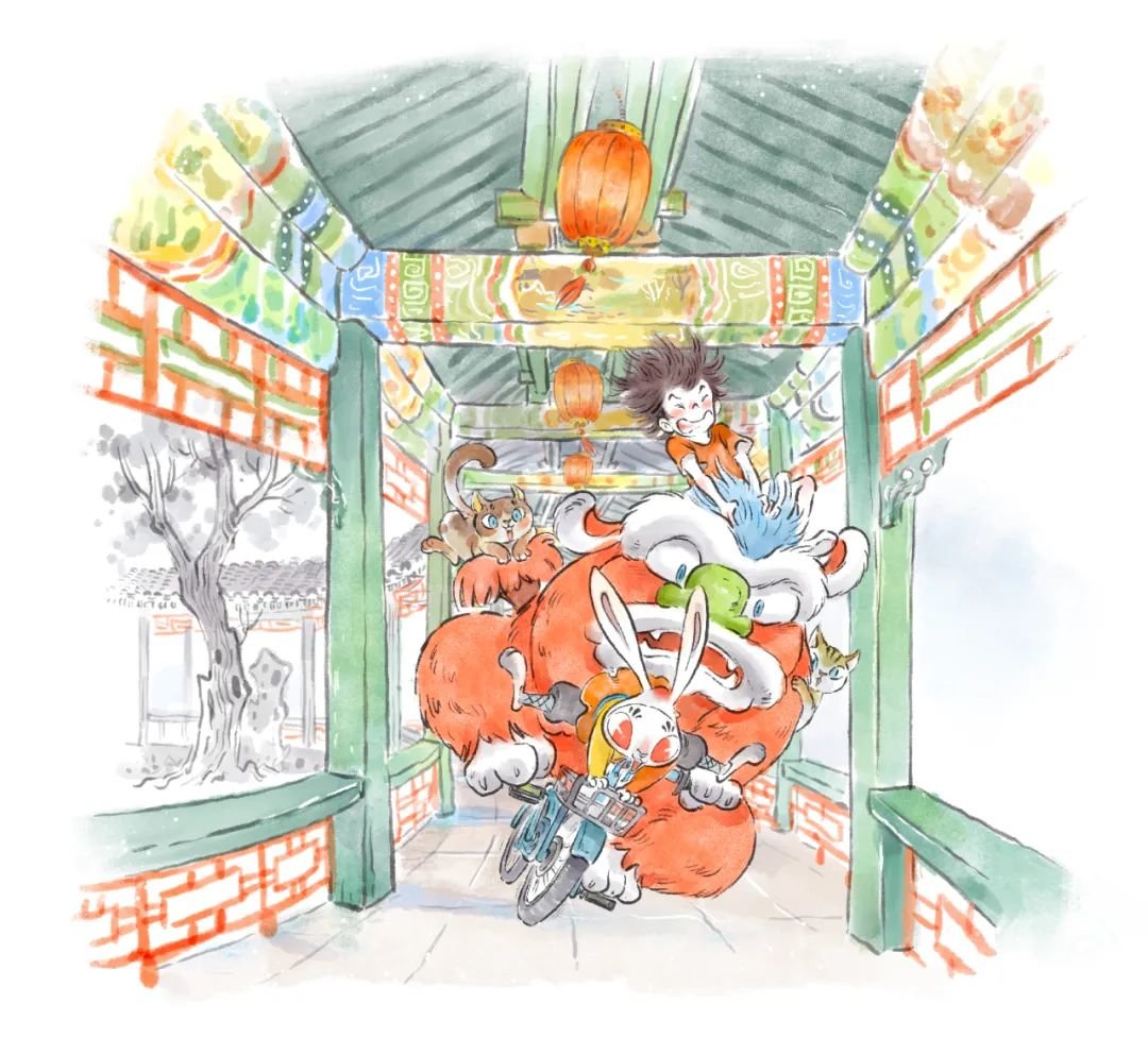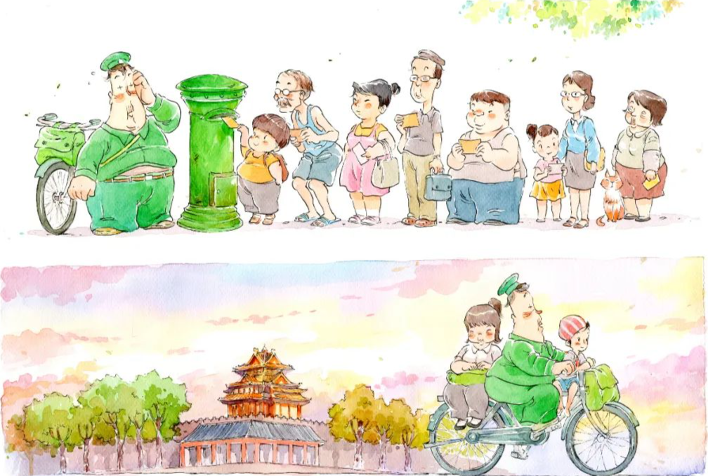但很多年后,这些在北京的画画时光,又成为他《老街的童话》的地域背景,这是一部更加温暖细腻明亮的全水彩绘本作品,有着故宫、老邮筒、老胡同、老单车这些童话记忆。
