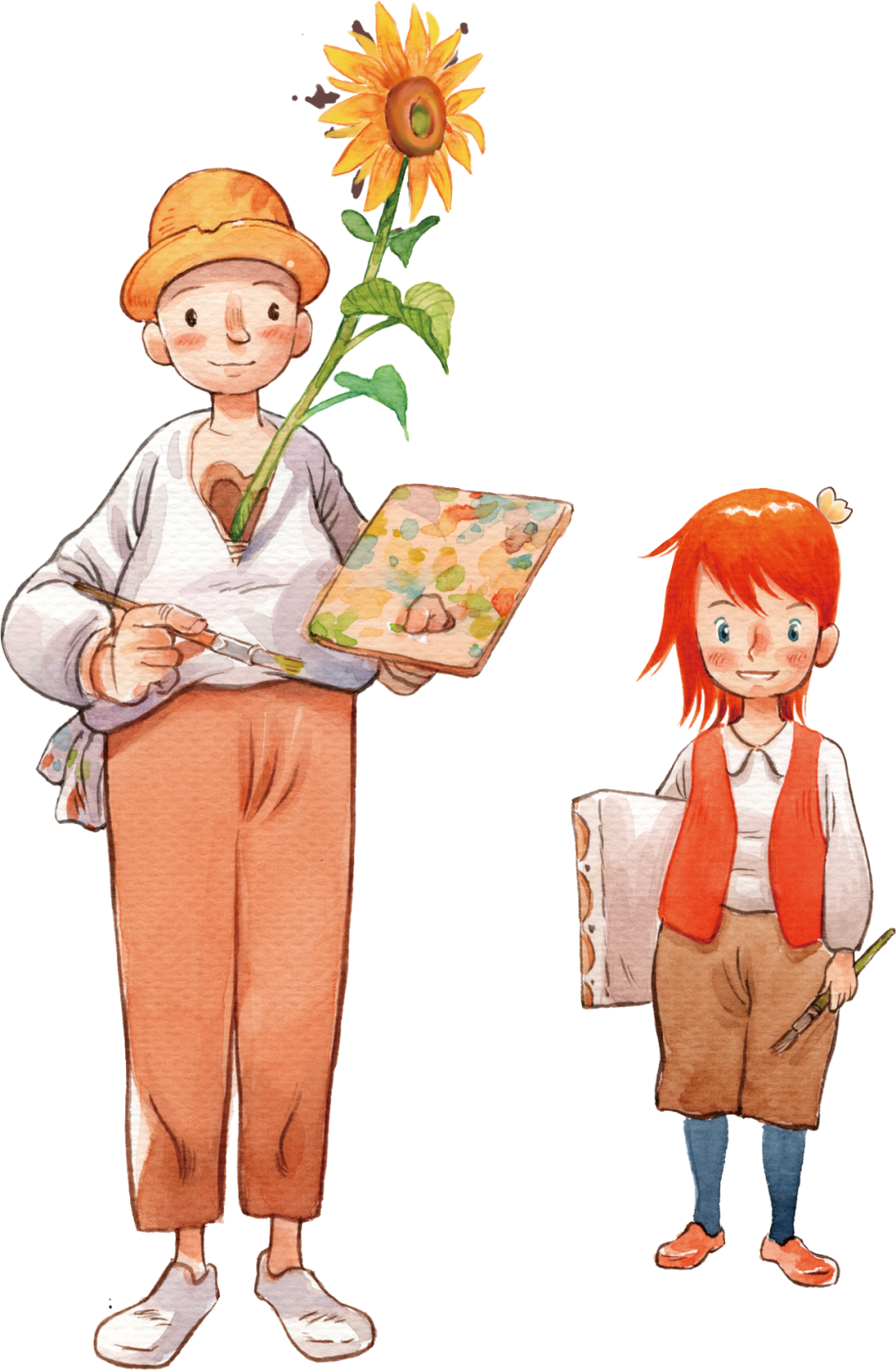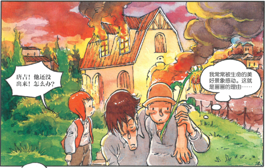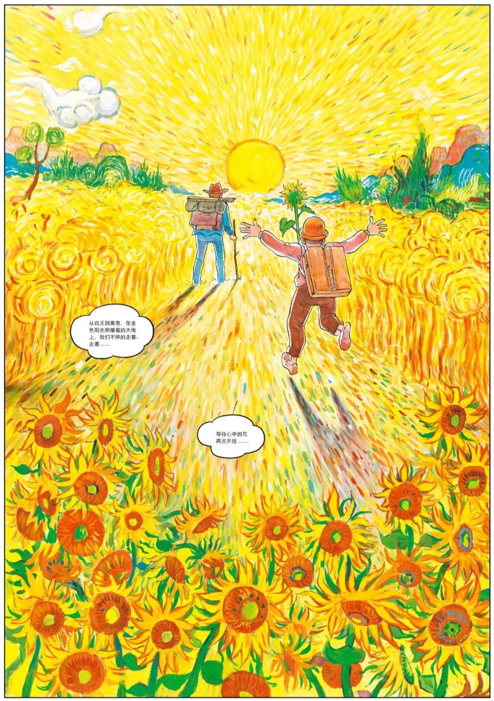于是,两个漂泊的人,背上画框,从白天到黑夜,一起沿着落日余晖照耀得辉煌灿烂的路途,走着、走着……等待心中的花,再次绽放。