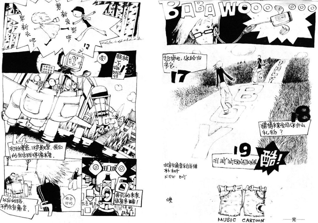 大学时,他把“国王与小鸟”乐队、麦田守望者、朴树、花儿乐队的新歌以漫画mv的形式让大家“听”到。