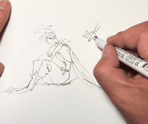 高中的时候,他在书摊上租日本漫画来看,高三他学着《阿拉蕾》《圣斗士》,画下了一个会打老虎的大力水手“兔侠士”,投稿到了《卡通王》,顺利刊载。随后“科普画王工作室”抛来橄榄枝,邀请他到北京画画。