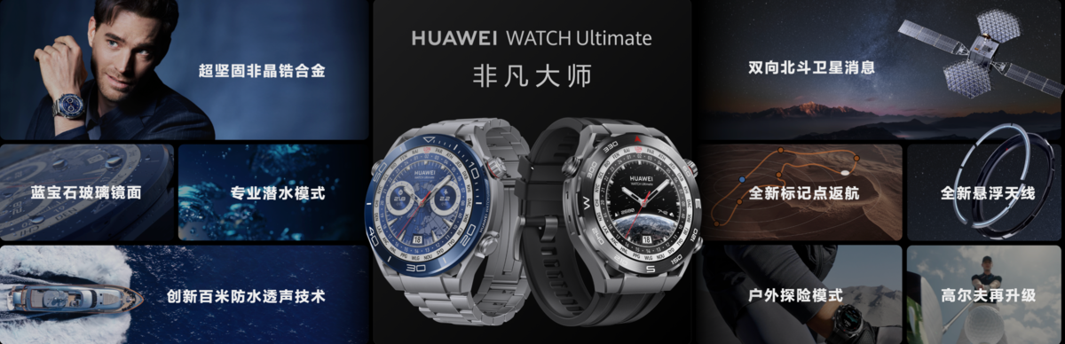 在2023年华为春季旗舰新品发布会上,华为正式发布全球首款支持双向北斗卫星信息的大众智能手表——华为WATCH Ultimate非凡大师,这也是华为迄今为止最强大的智能手表。