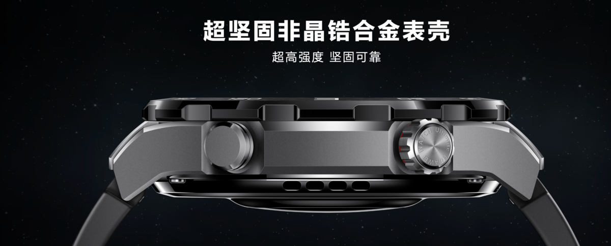 华为WATCH Ultimate非凡大师表壳采用的非晶锆合金材质,是新型的高端材料,兼顾金属和玻璃的双重特性,有着极高的强韧度,而且还有更出色的抗腐蚀性。对比当下可穿戴设备采用的不锈钢和钛合金材质,都有更高的硬度,更加耐刮,平时使用的时候也不用担心会划伤表体,更高的耐腐蚀性,用户即使经常潜水也能够不用担心海水会对它造成腐蚀影响。