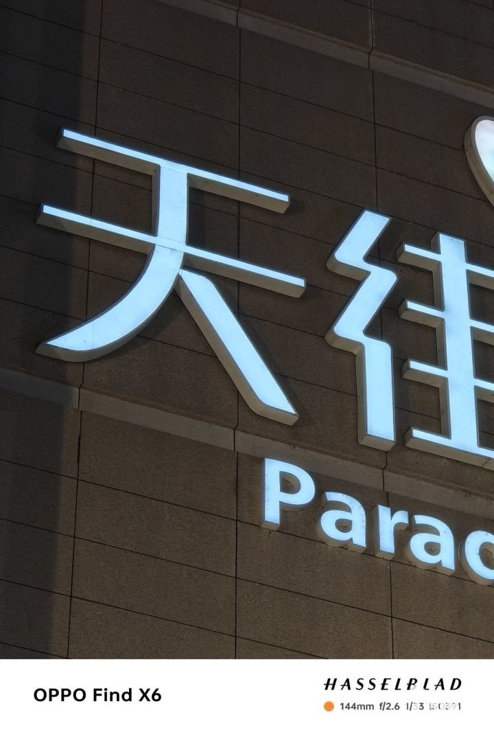 拍摄夜间文字场景时,Find X6的优势更加明显,不光细节解析力丰富,并且明暗过度自然,仔细观察上方文字的阴影区域,Find X6展现的非常清晰,简直就是“望远镜”。