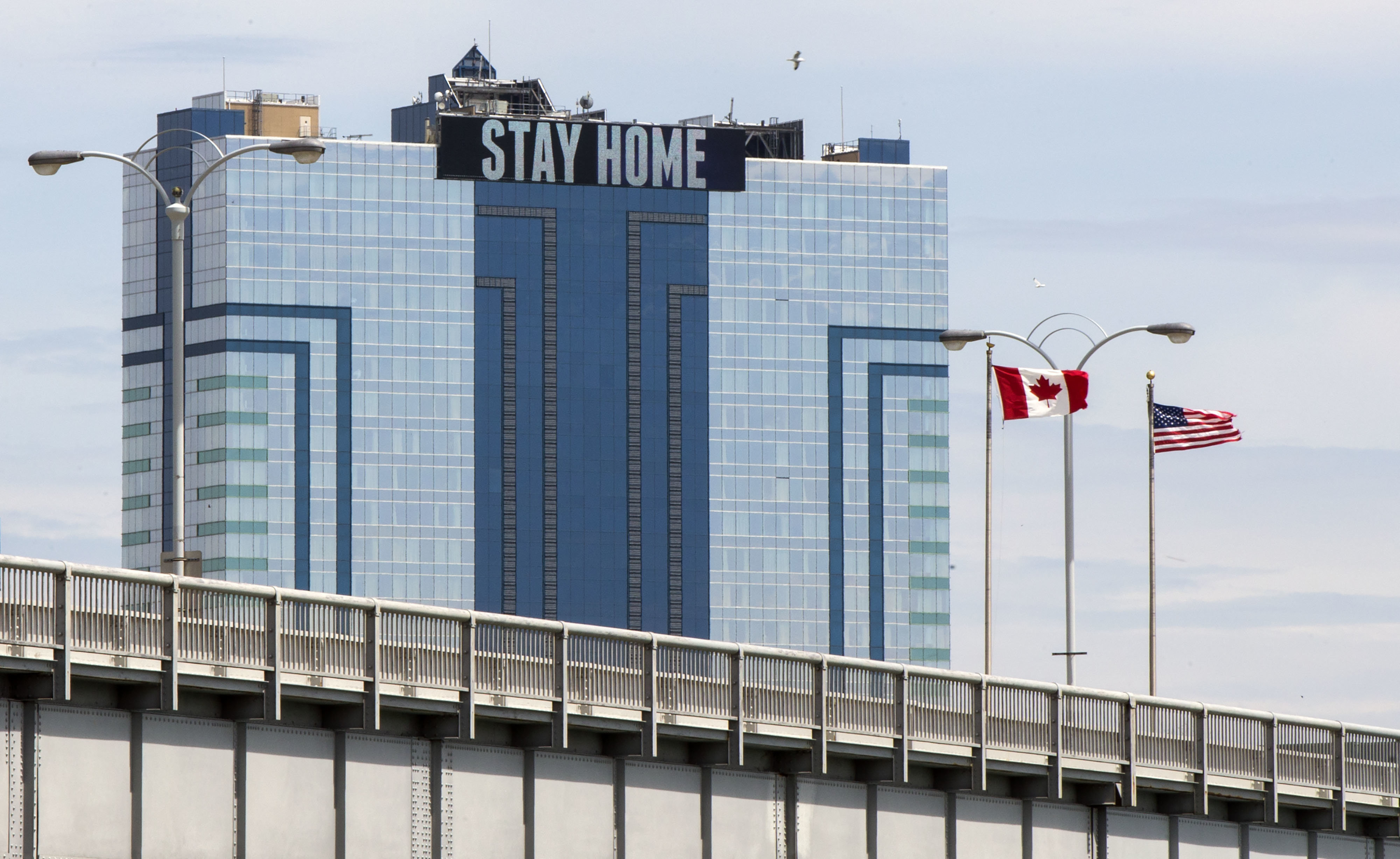 这是2020年5月19日在位于加拿大安大略省尼亚加拉瀑布的彩虹桥旁拍摄的加美边境地带。新华社发(邹峥摄)