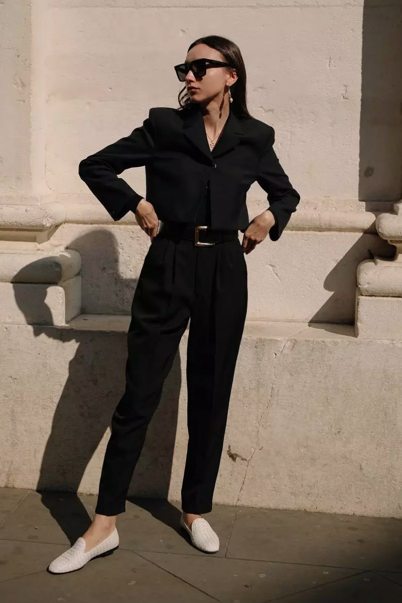 自打阔腿裤有烂大街之嫌后,时髦精们如今都开始偏爱起了更加实穿不挑人的“锥形裤”。