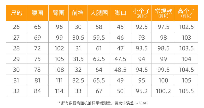 关于尺寸的,如果不知道是否适合,就可以拿自己已经入手,穿着觉得适合的裤子,量一下尺寸,可以作为参考。当然这个也要看裤子本身的面料,是否有弹性。