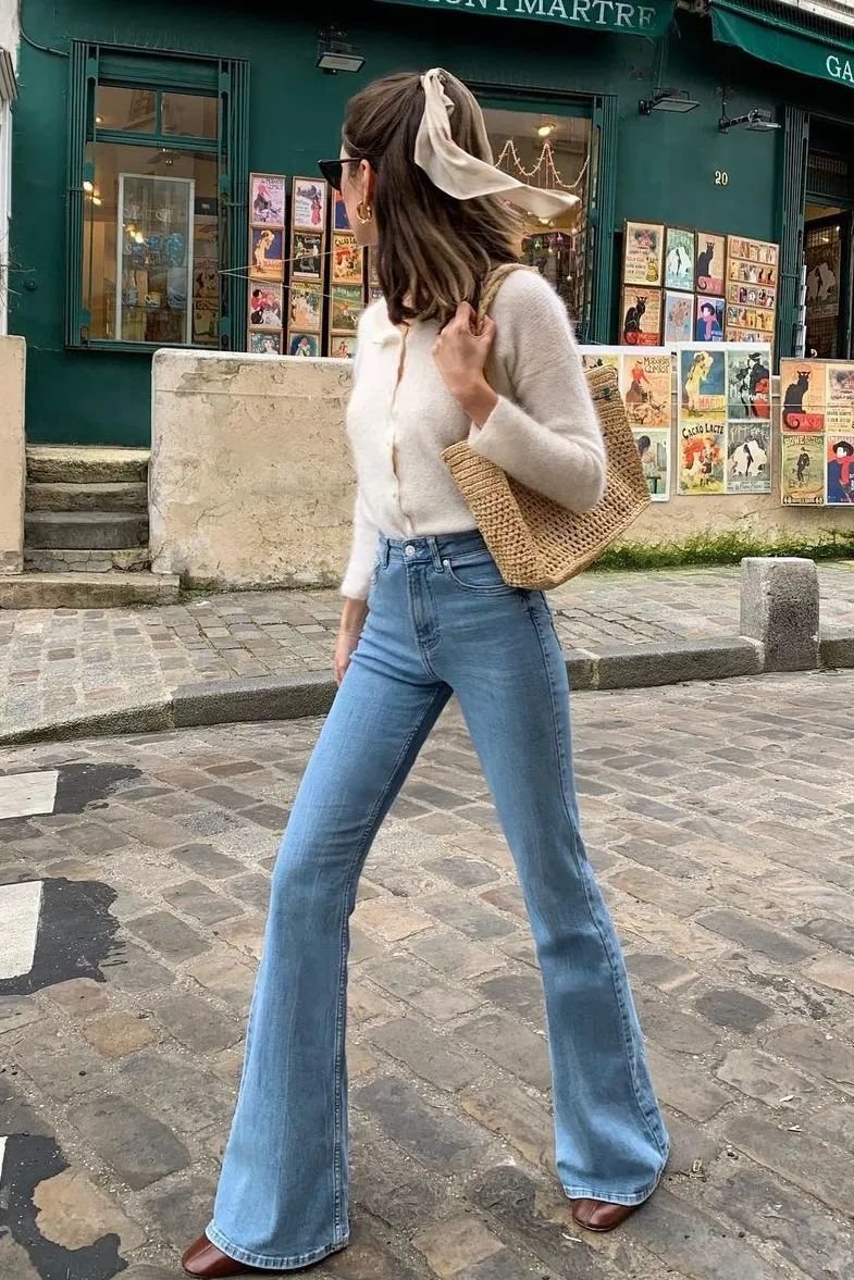下摆偏宽大的微喇裤,对于小腿的修饰效果无裤能及,而且还特藏肉,粗壮的“肌肉腿”遇上它终于有救了。