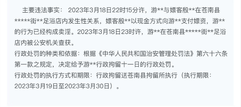 近日,在浙江政务服务网上,浙江温州苍南的一家足浴店因卖淫嫖娼被警方给“一锅端”了。共有6名男女被拘留。
