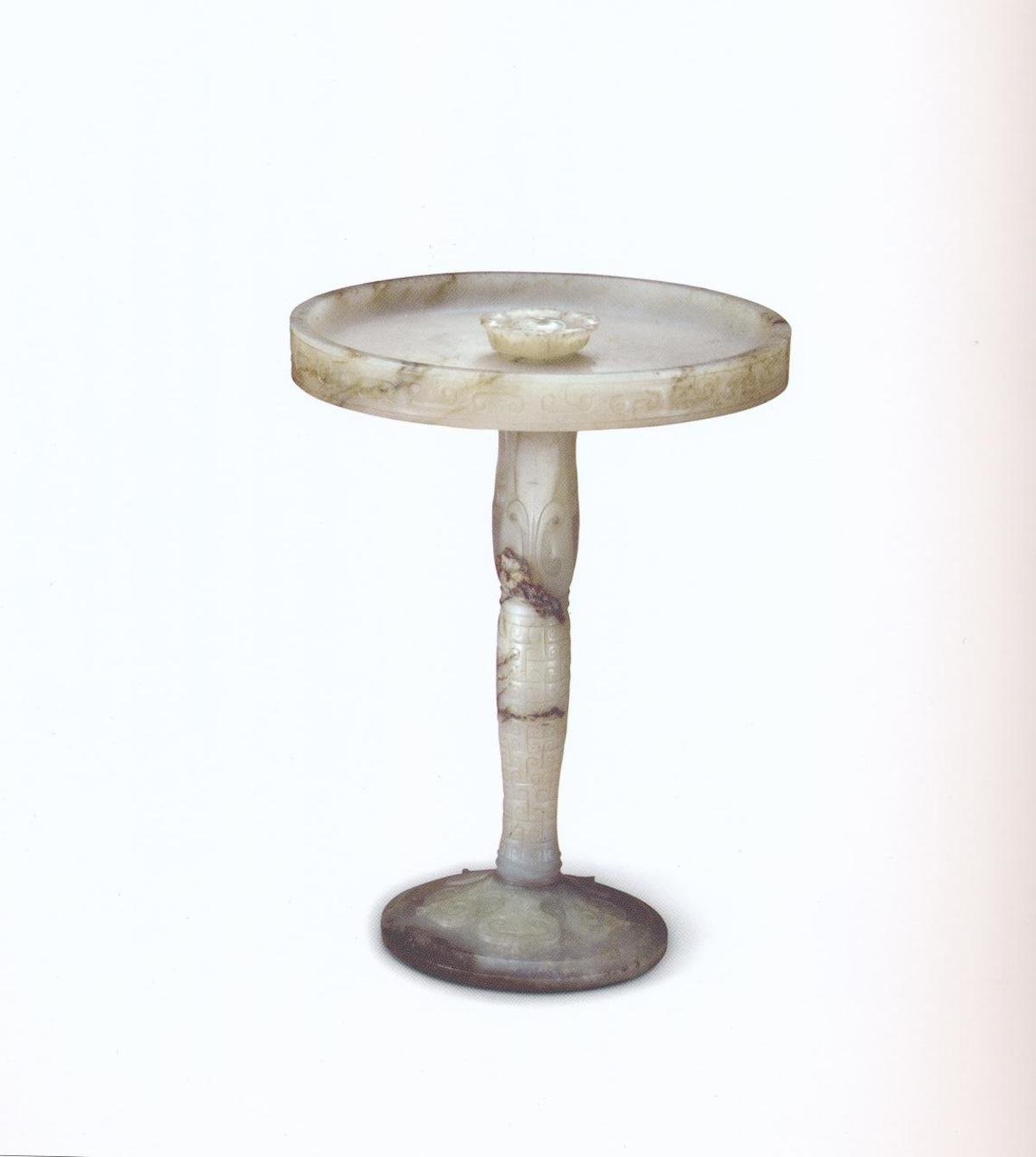 (战国晚期—西汉早期)玉勾云纹灯 玉质 高12.8厘米 盘径10.2厘米 足径5.9厘米 故宫博物院藏