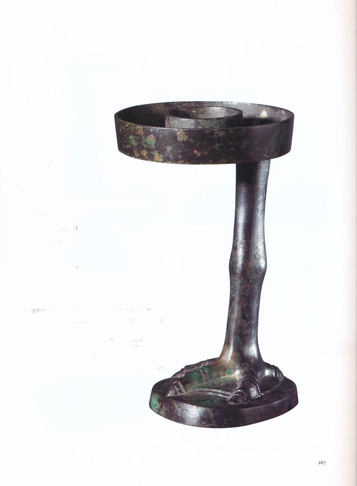 玉灯珍贵,汉代的青铜灯具也并非普通人所能拥有。就目前的考古发现来看,出土青铜灯具的汉墓墓主大多非富即贵:他们或是各地的诸侯王,或是地方的官吏,亦有可能是富庶的地主阶层。就出土的比例来看,国力相对强盛的西汉时期,青铜灯具的出土数量也较多,而某些特定类别的青铜灯,所流行的时间也有所差异。青铜灯中有较为简约者,试以雁足灯为例。此灯目前最早见于公元前三世纪的遗址中,主要流行于秦汉时期,在西汉晚期至东汉早期达到巅峰。雁足灯的所有者大多为汉室贵胄,有一些还镌刻铭文,铭文内容涉及重量、尺寸、制作年代、制作者、督造者、所有者等信息,是官方制作灯具的最佳典范,展现了彼时严格的品控标准。上海博物馆所藏的中宫雁足灯主要构造即为灯座、灯柱、灯盘。灯座通常类雁爪仿生,上顶一圆凹形灯盘。