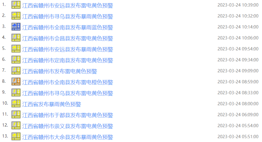 赣州接连发布26条预警消息