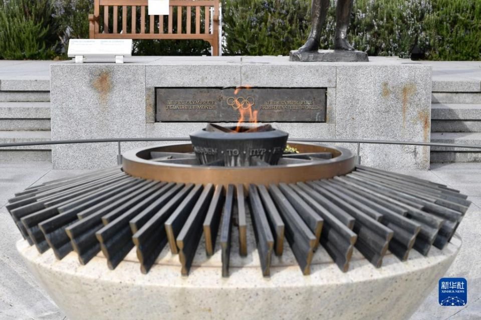 这是3月21日在国际奥林匹克公园内拍摄的雕塑。新华社记者 连漪 摄