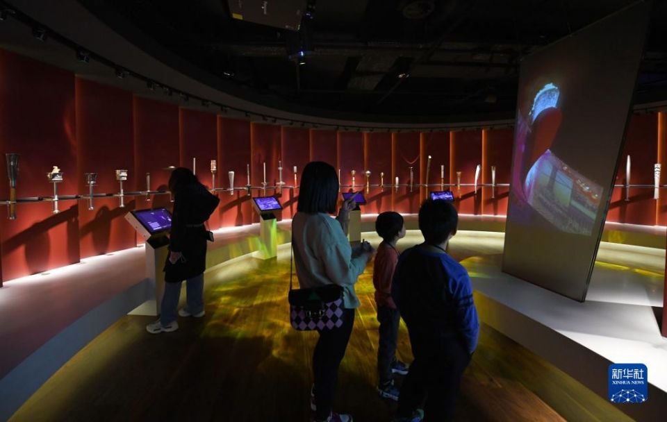 3月21日,人们在国际奥林匹克博物馆的火炬展示区参观。新华社记者 连漪 摄