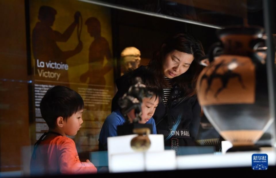 3月21日,人们在国际奥林匹克博物馆内参观。新华社记者 连漪 摄