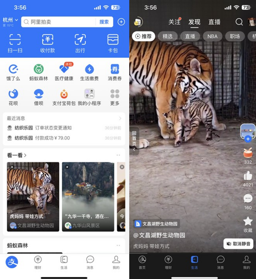 支付宝首页“看一看”、生活频道