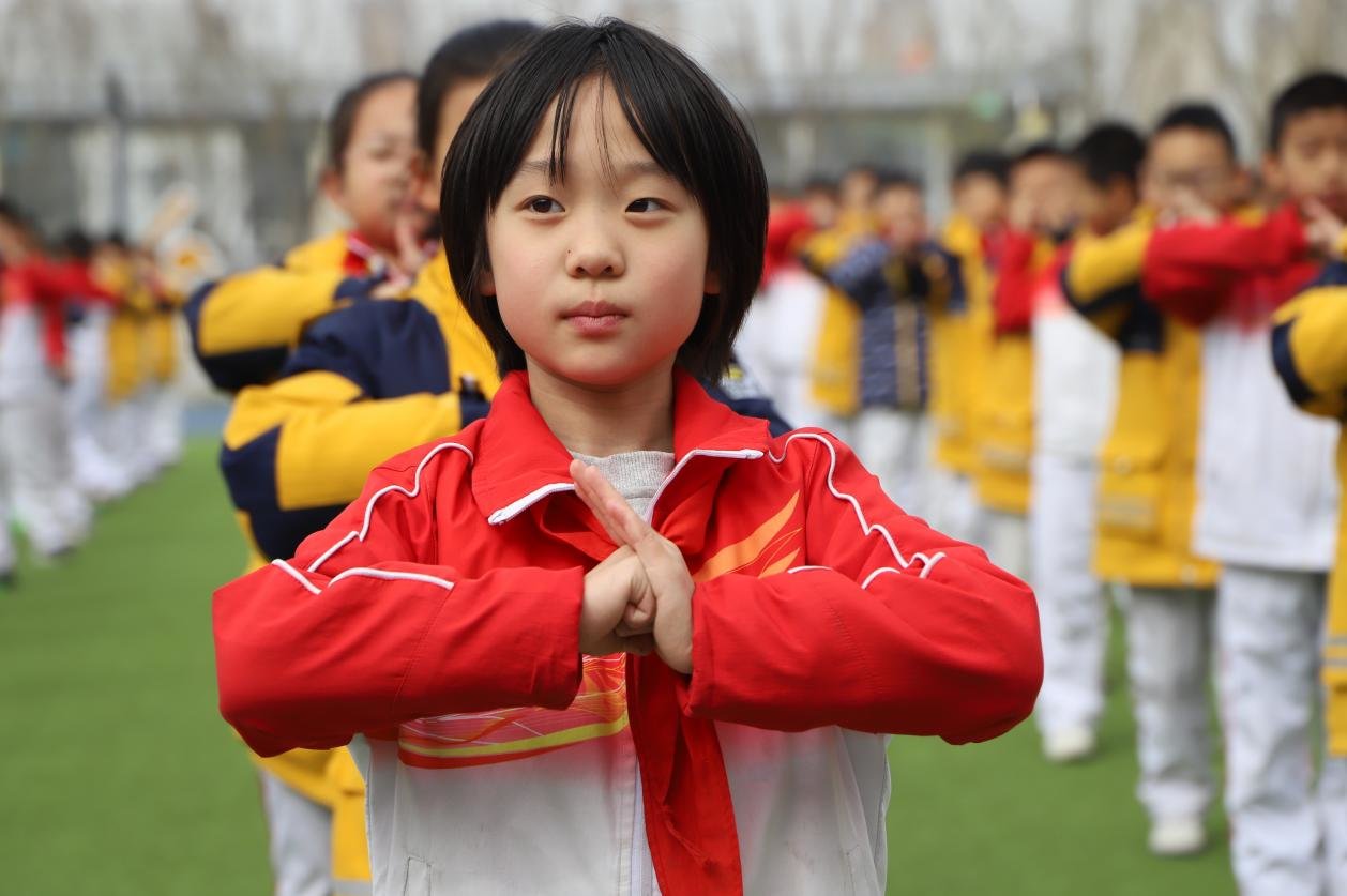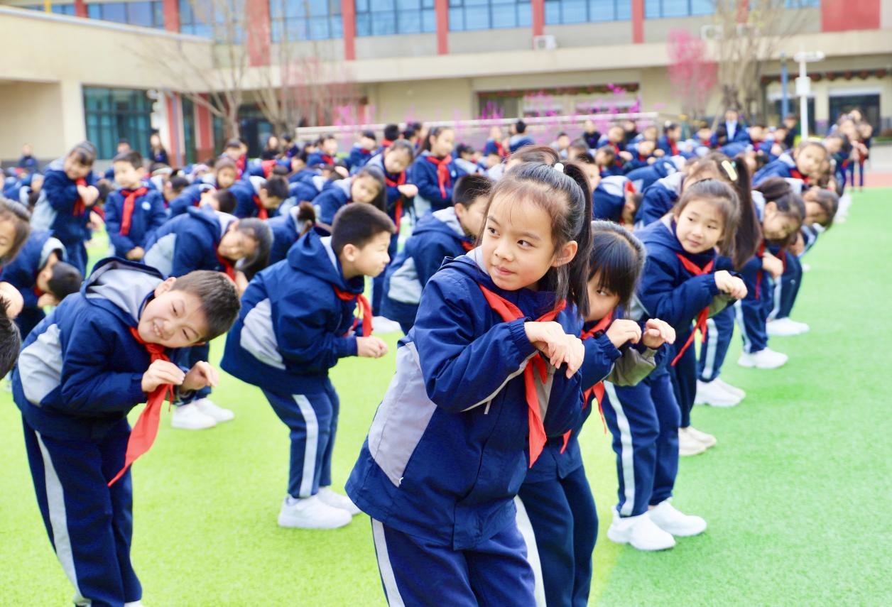 在西安高新区第十六小学的大课间,孩子们随着音乐,在嬉戏玩耍中,模仿虎之威猛、熊之沉稳、鹿之安舒、猿之灵巧、鸟之轻捷,五禽的神韵在孩子们一遍遍练习中得以彰显!孩子们功法认真,动作有模有样,锻炼了身体,收获了快乐,同时也将非物质文化遗产传承发扬。