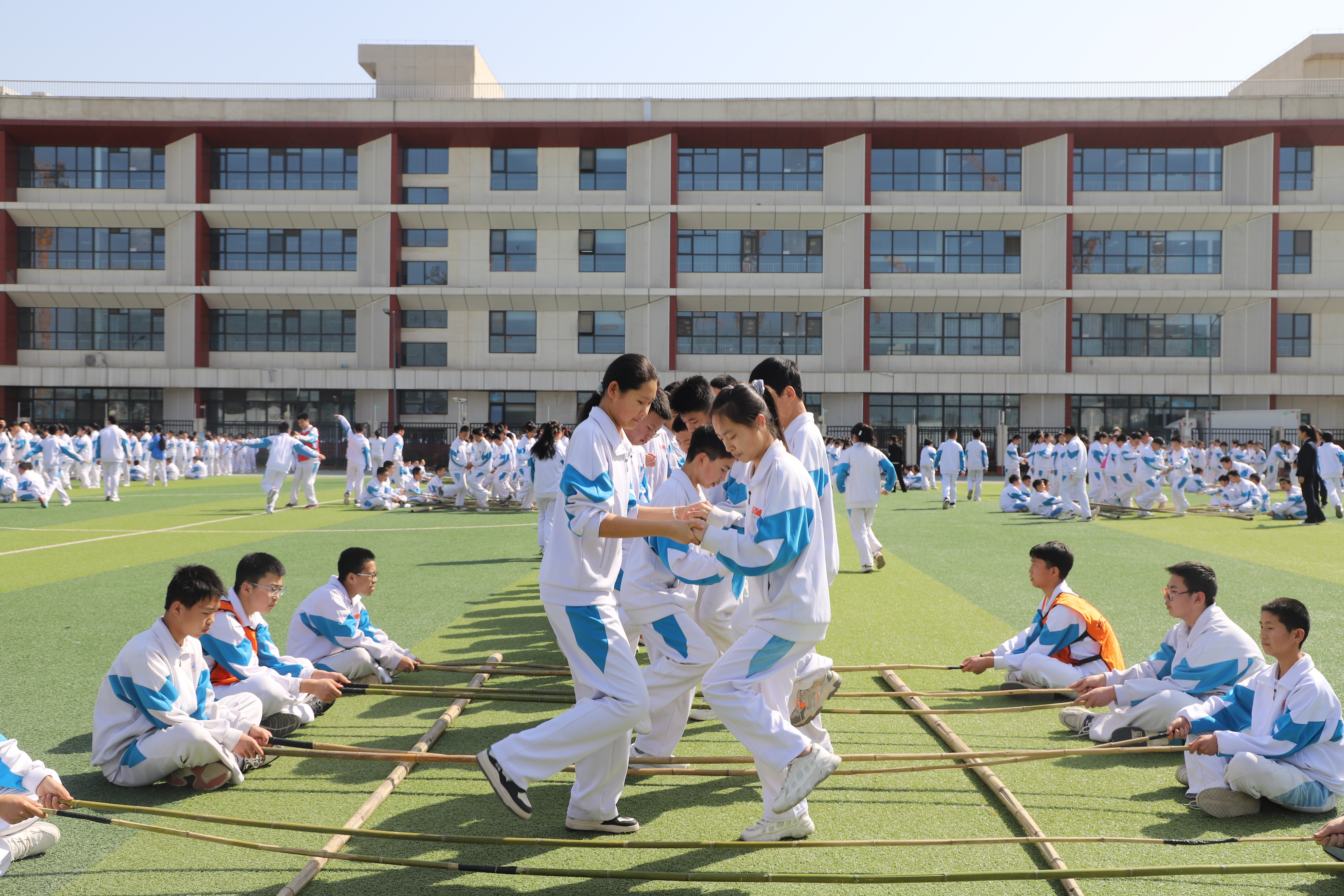 新形式下的体育大课间活动,打破了传统的课间形式,采用多种活动让孩子们身体得到充分的锻炼,也让孩子们体验活力迸发的喜悦,让大课间真正成为学生增强素质、提升内涵、发展个性和放松自我的“百花园”。