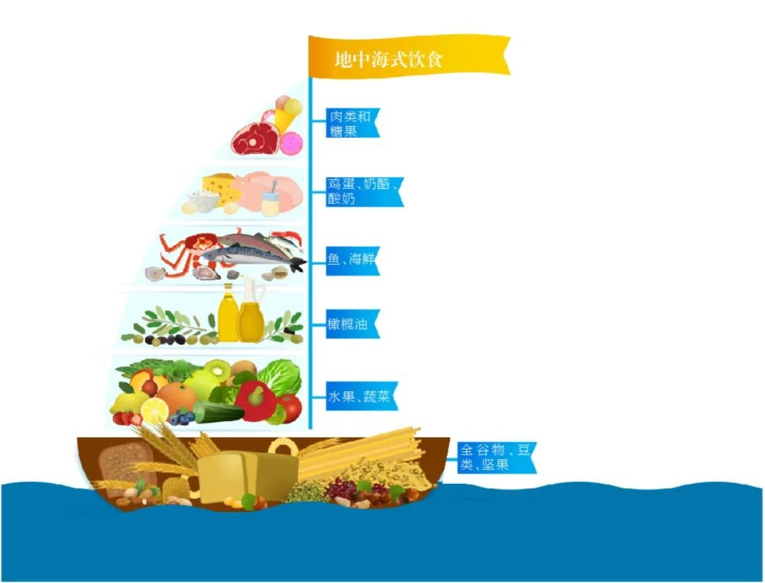 地中海饮食是位于地中海沿岸国家,包括希腊、意大利、克罗地亚、黎巴嫩、土耳其和摩纳哥等国的传统饮食方式。食谱中包括水果、蔬菜、全谷物、豆类、坚果、豆类、初榨橄榄油以及香草和香料,人们每周至少吃两次鱼和海鲜,还有适量家禽、鸡蛋、奶酪和酸奶。
