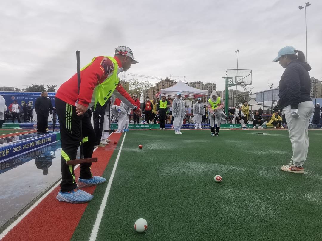 瞄准、挥臂、击球......3月24日,在四川达州市宣汉职业中专学校的门球场上,来自全国各地的门球运动员正在激烈比拼着。当天上午,2022—2023中国门球冠军赛总决赛在达州市宣汉县拉开帷幕,中国门球协会主席、国家体育总局财务管理和审计中心主任、党委书记于建勇宣布开赛。