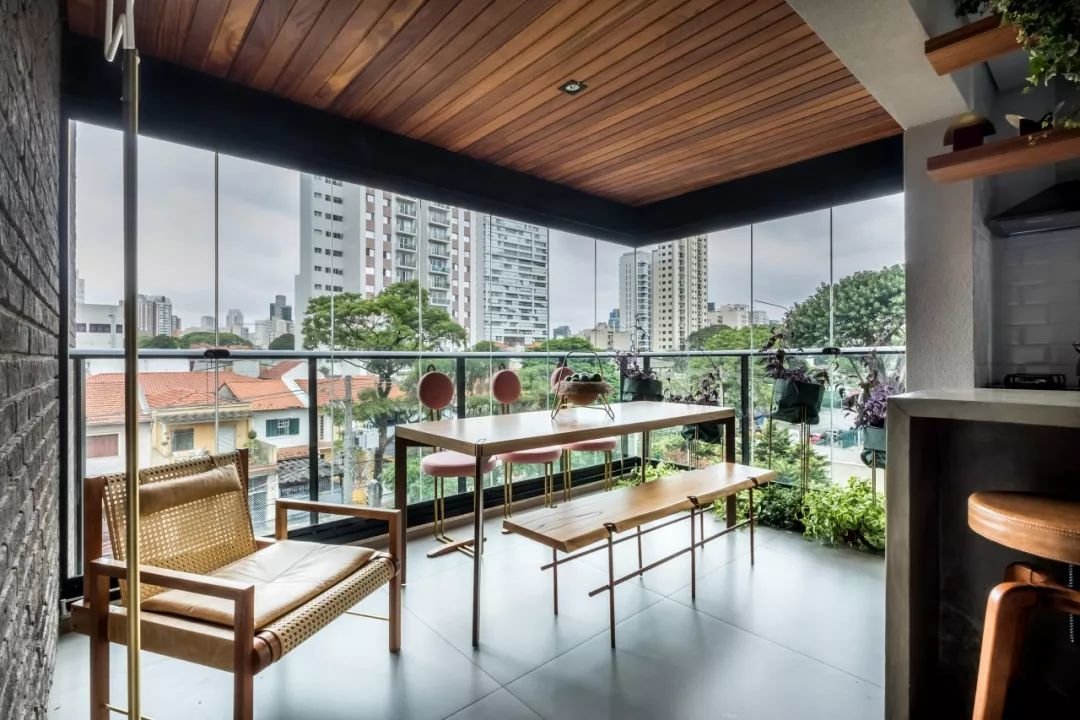 除了上面几种常规布局之外,也可以将餐厅放到阳台。阳台丰富的采光和室外独特的风景,也可以大大提高就餐时的氛围。