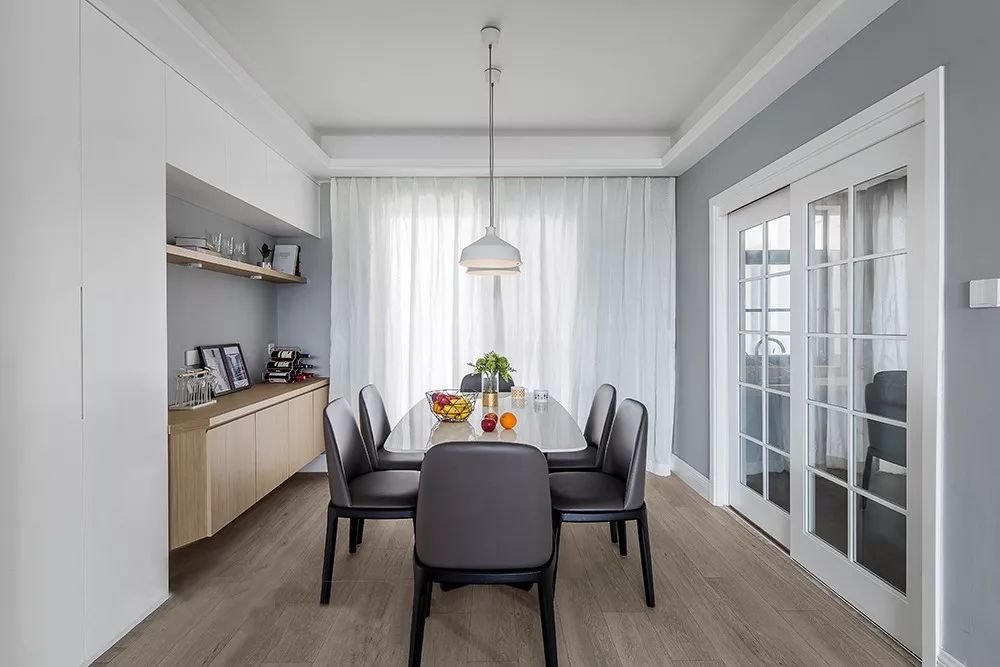 独立式布局适用于空间较大的居室。选择一间与厨房相近的房间作为餐厅,在这个空间内,既能满足吃饭这一功能性需求,又可以作为厨房收纳的延伸。而且独立充足的空间也更有利于房主或者设计师设计思想的发挥。