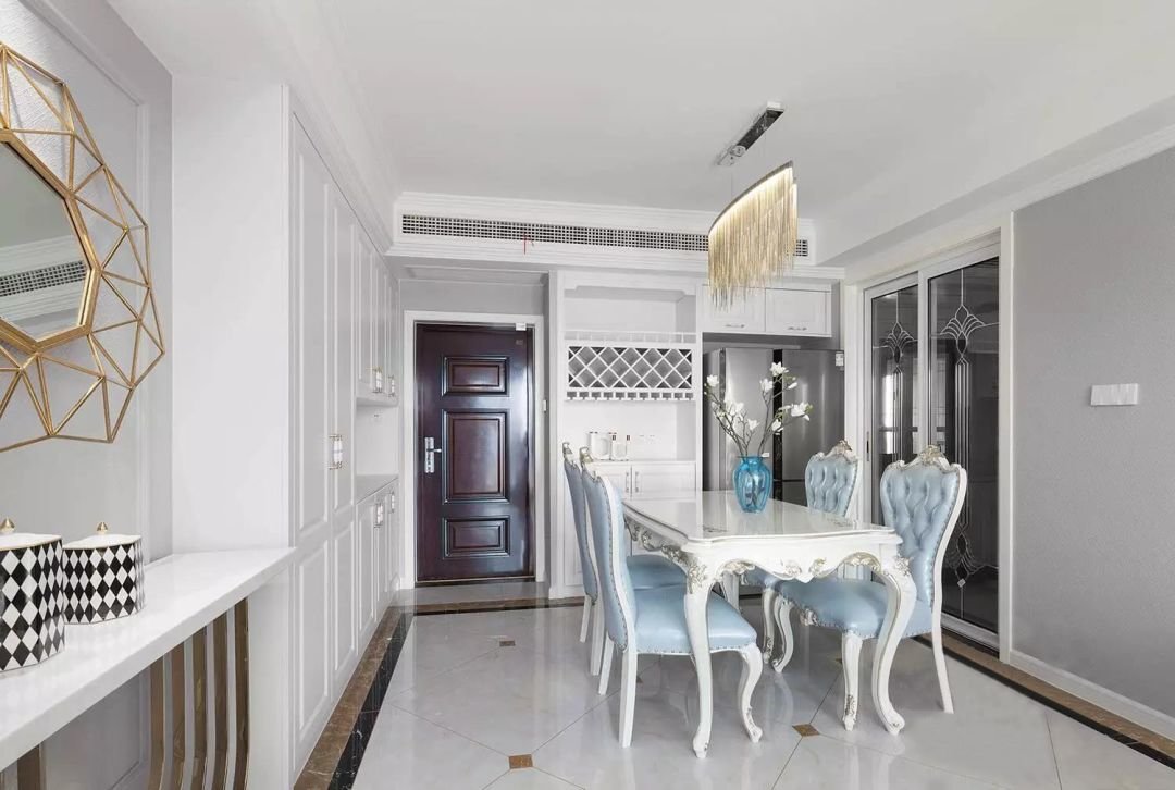 在布置餐桌时,也要留出一定的活动空间。一般来说,餐桌和墙壁之间最好留出80厘米到100厘米的空隙,便于座椅的拉出和来回走动。