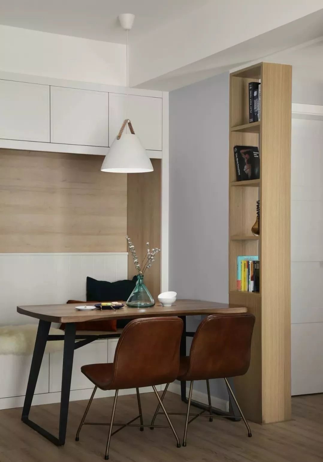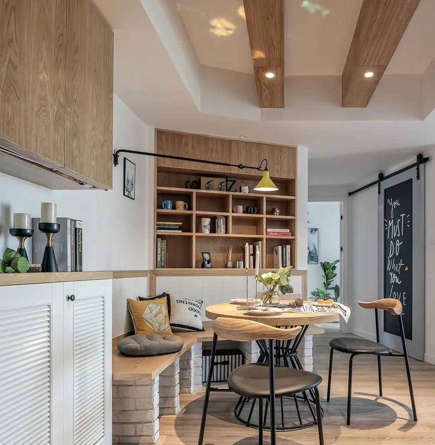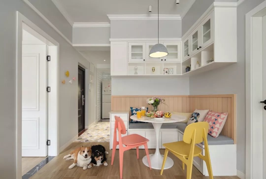 小户型装餐边柜很碍地方?可以将餐边柜与卡座进行结合。不仅节省空间还能增加用餐人数,很实用的设计。