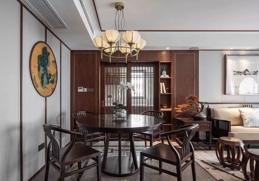 除了餐厅大小和用餐人数之外,也可以根据装修风格来选择圆桌还是方桌:中式、美式的装修可以用圆桌;现代风、北欧风、简约等风格则可以选用方桌。