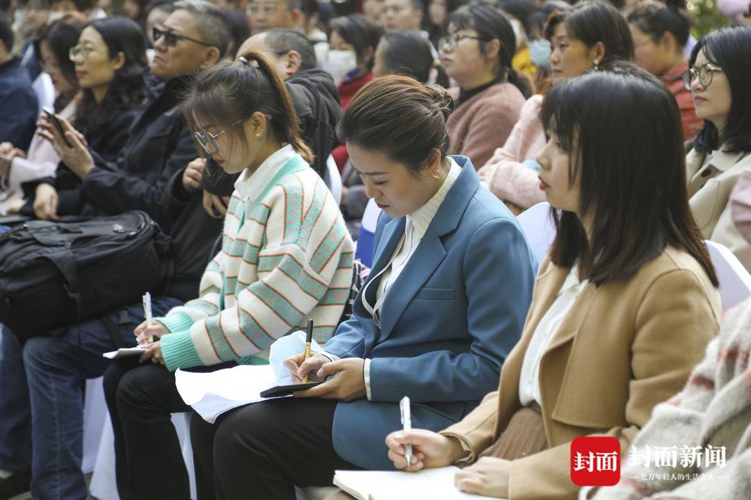 仲春的三苏祠风景明媚,园内广植竹林,草木苍翠茂盛。趁着春日的微风,偶尔会有一片两片竹叶飘过树梢,落在正在聆听讲座的观众的肩头,却没有功夫在意。在东坡盘陀坐像前的广场中,能见到不少聚精会神的观众,或跟着李贵教授的述说发出愉悦的笑声;或埋头专注笔记书写,生怕错过精彩的要点;或忙着举起手机,想要拍摄下讲座的内容……在三苏祠惬意的春光中,在“三苏”的故居里,人们沉浸在李贵的讲述中,似乎看到了苏轼曾经走过山川河流,见到了他吃过的人间百味,更感受到他对于故乡的热爱和赞咏。