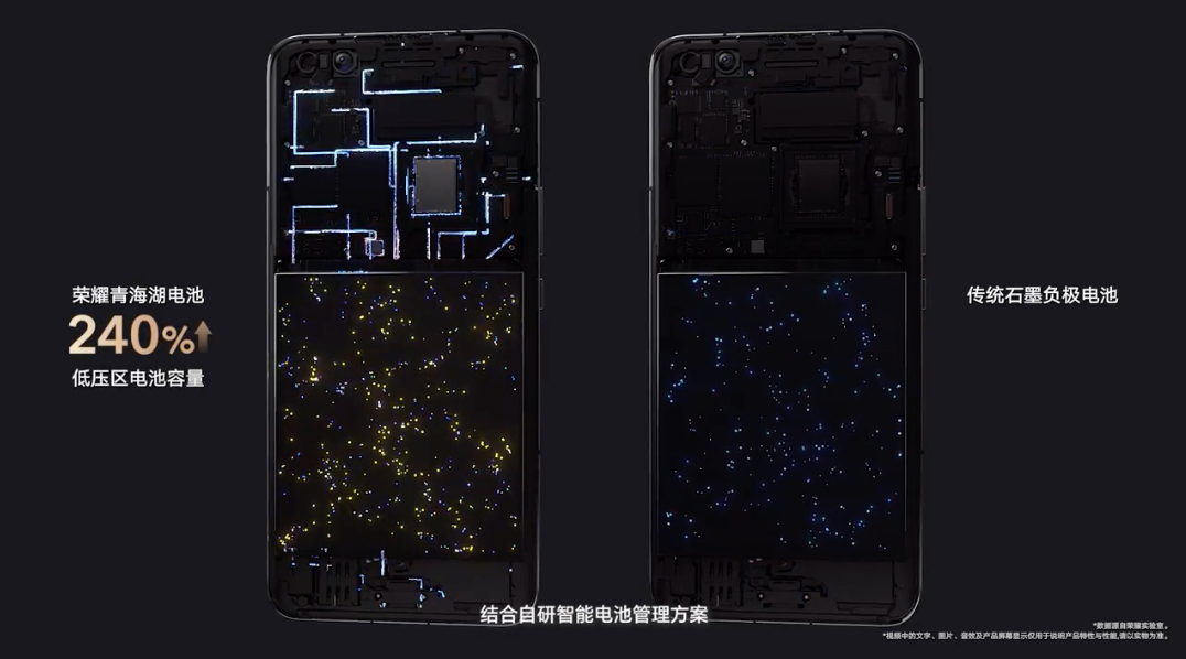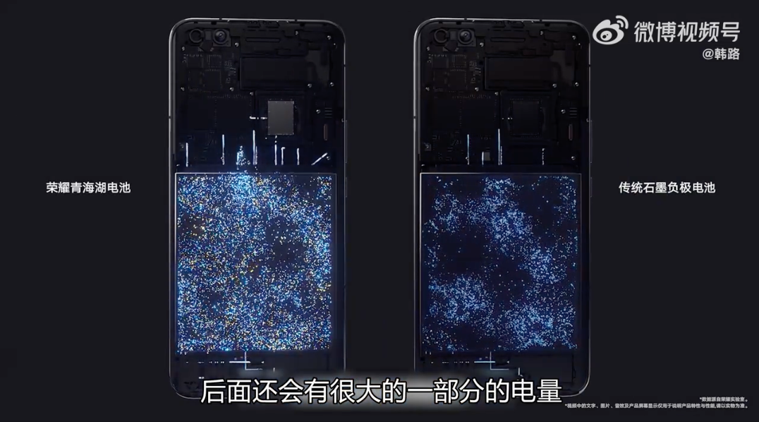 从目前的电池材料上看,大多数石墨电池所采用的正负极材料的克容量(也就是电池能量密度)潜能已经接近极限,没有办法再提升电池容量。而荣耀的这项「青海湖电池」,基于电池材料进行全新探索,带来全新的硅碳负极电池技术,基于电池容量以及能量密度进行提升,在相同电池体积的情况下带来更高的电池容量,专门解决手机的续航问题。