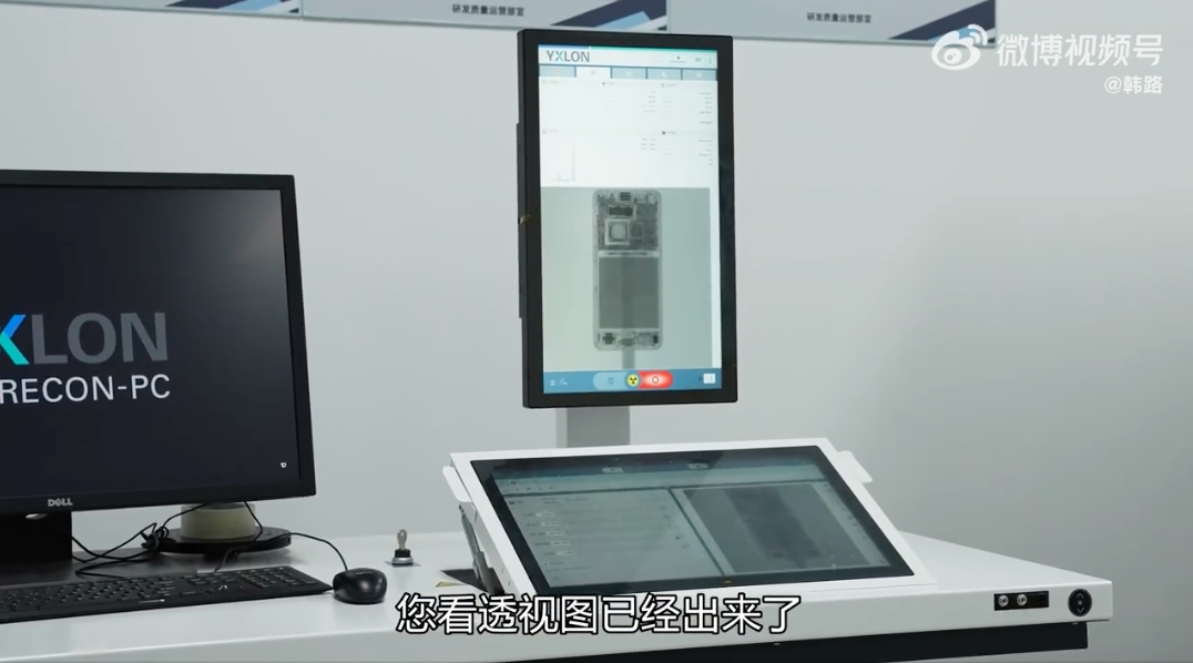 首先是给手机电池 “做 CT”。我们知道如果人体内有没有伤就要做 CT 检查,而手机电池是也一样的道理。仪器可以在不拆开手机c的情况下,对手机进行无损检查,射线探伤,检查完毕可以看到一个 360 度的立体透明的 X 射线图,后台还会建立起电池的三维数据库,以观测电池的受损情况。