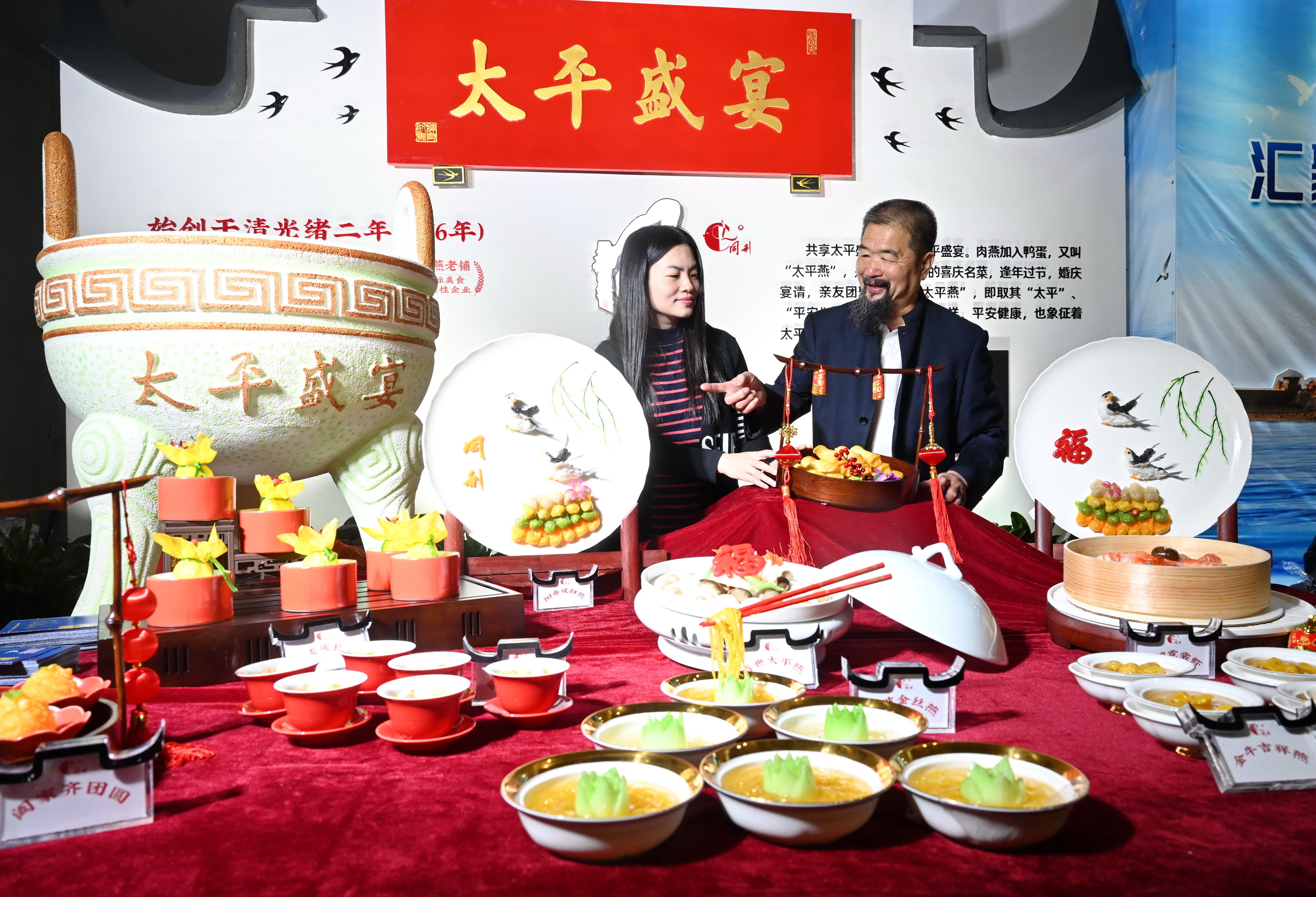 3月24日,从业者在2023中国国际餐饮产业博览会现场介绍福州肉燕。新华社记者 林善传 摄