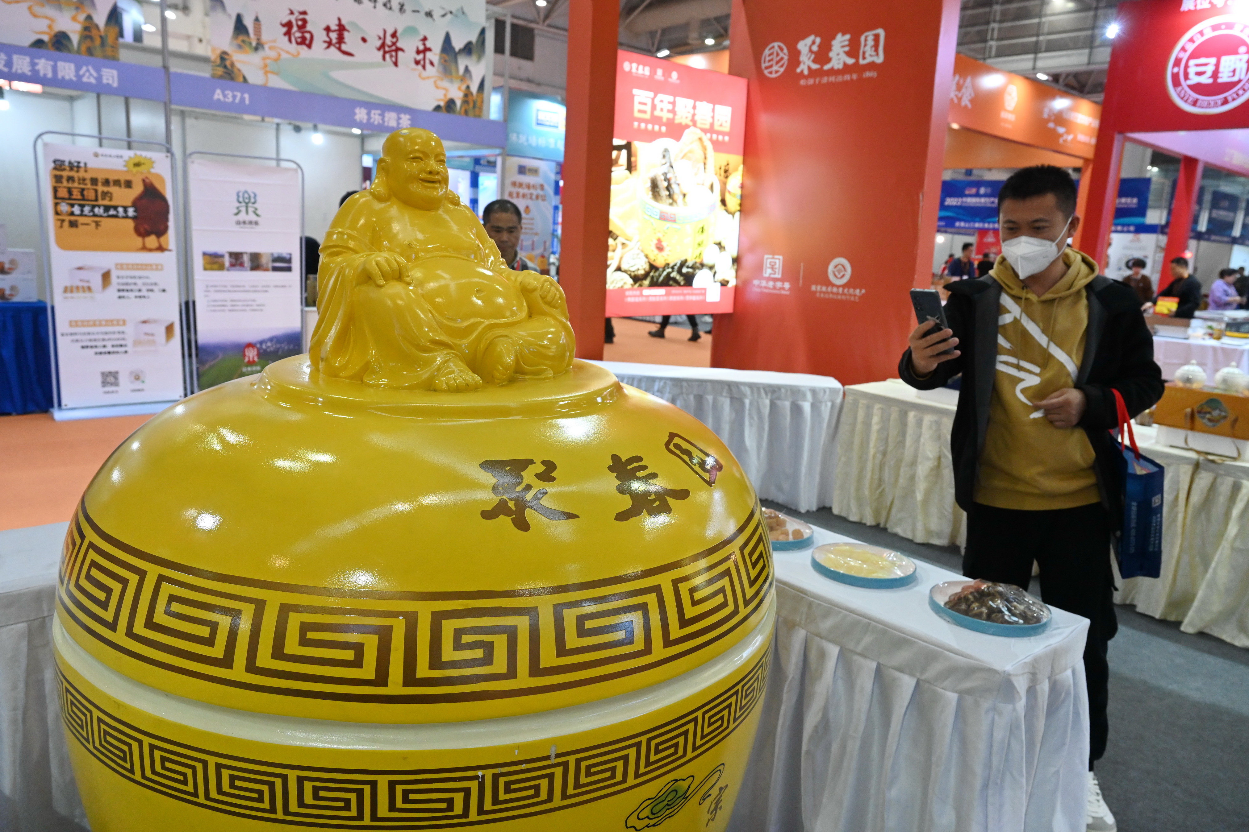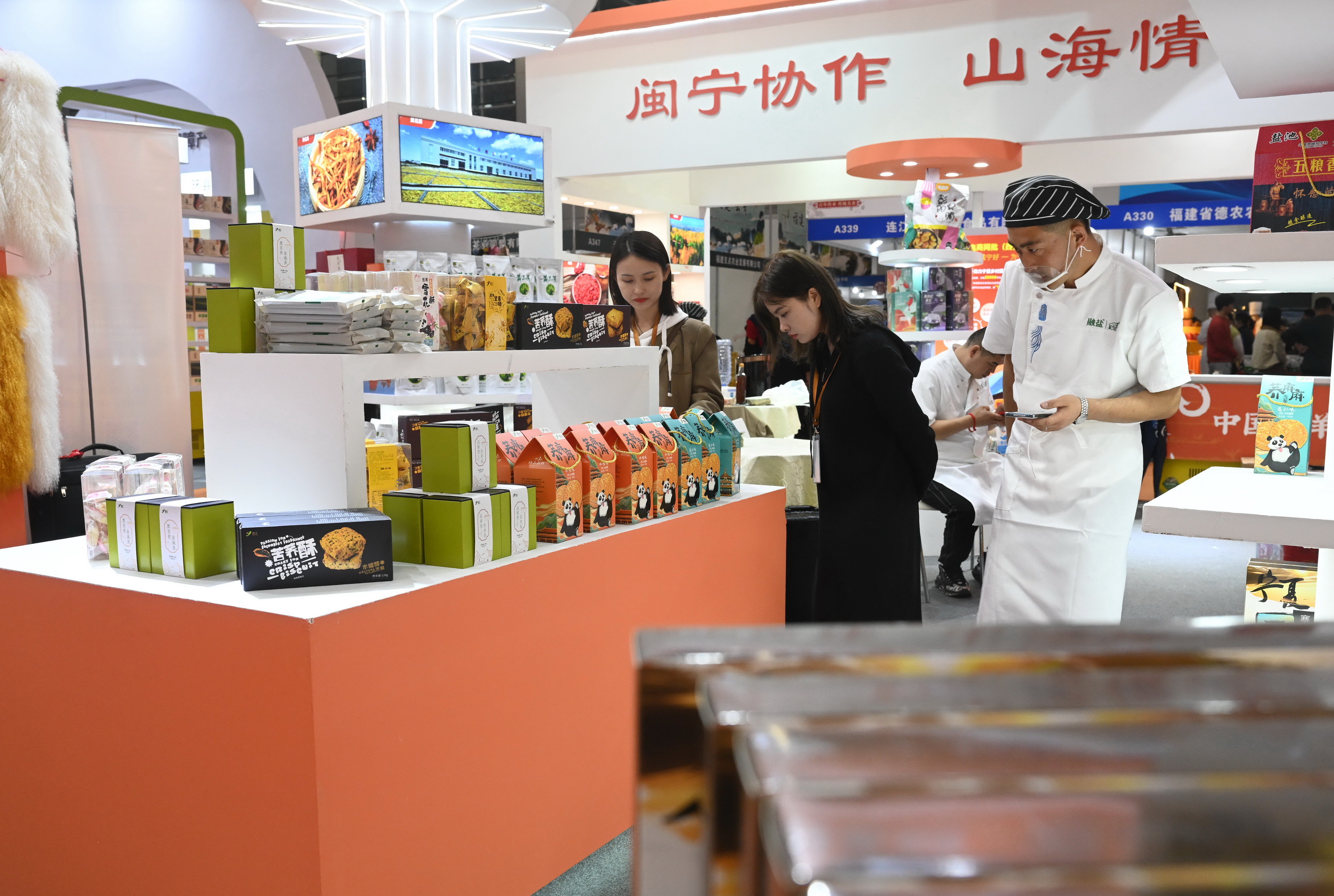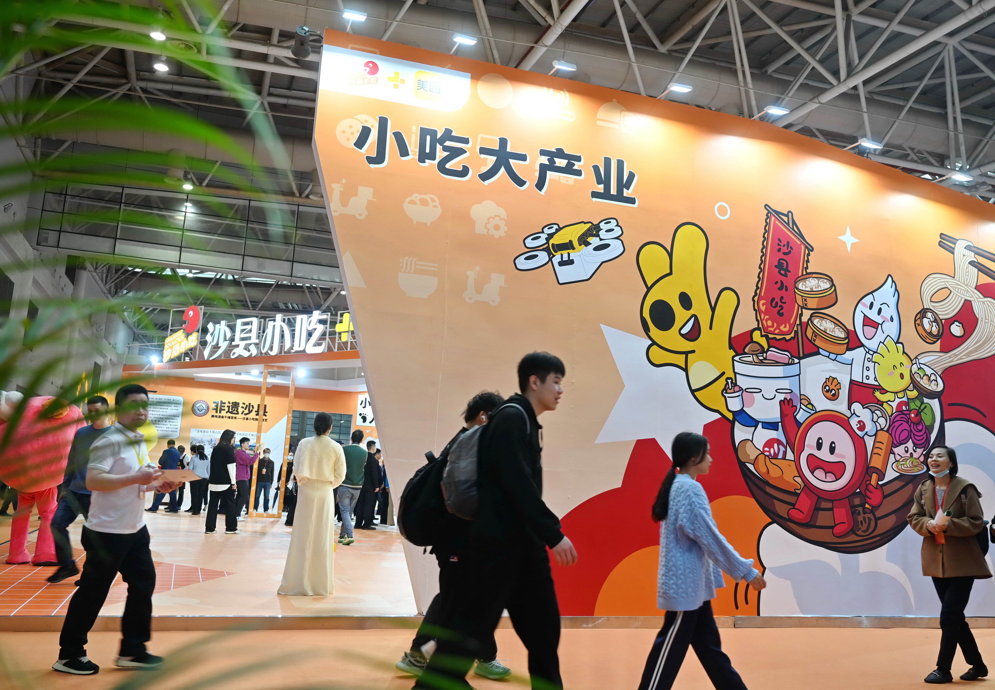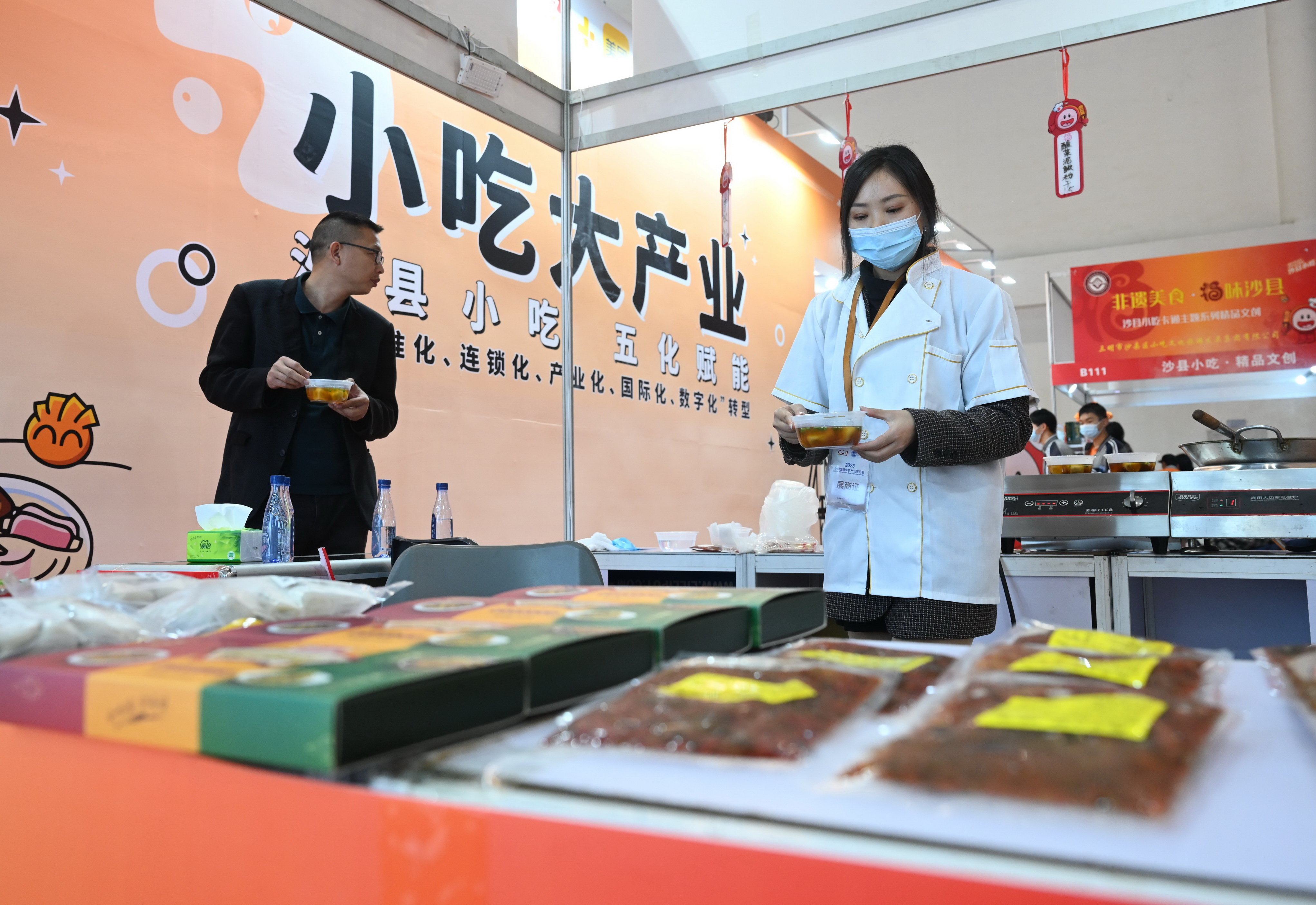 3月24日,参展企业展示福建三明小吃。 新华社记者 林善传 摄