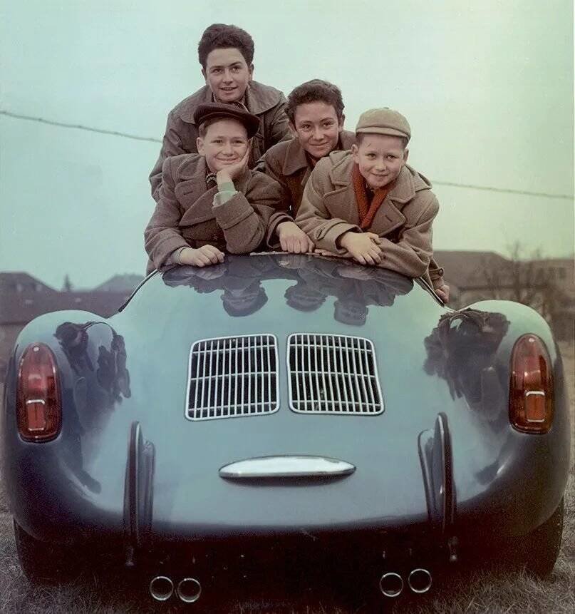 (费利·保时捷夫妇与四个儿子,左一为格哈德·保时捷)