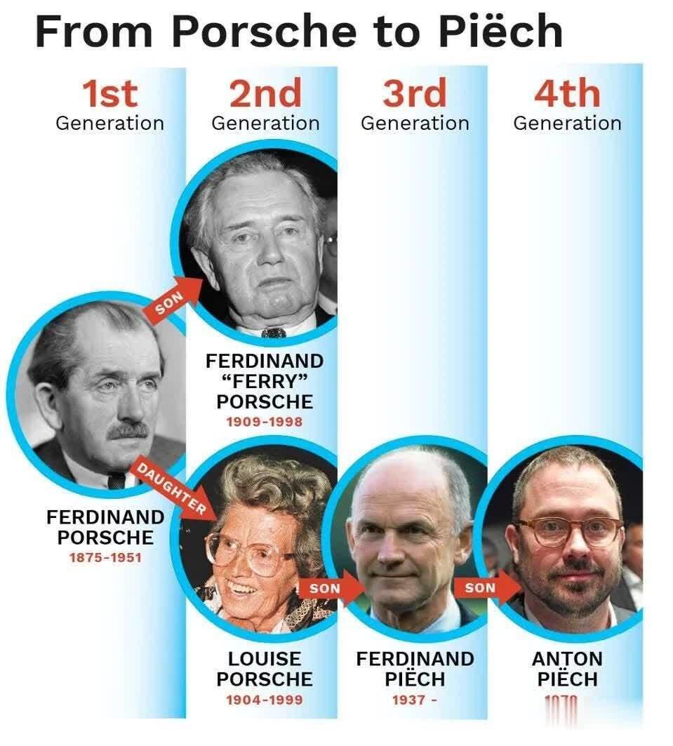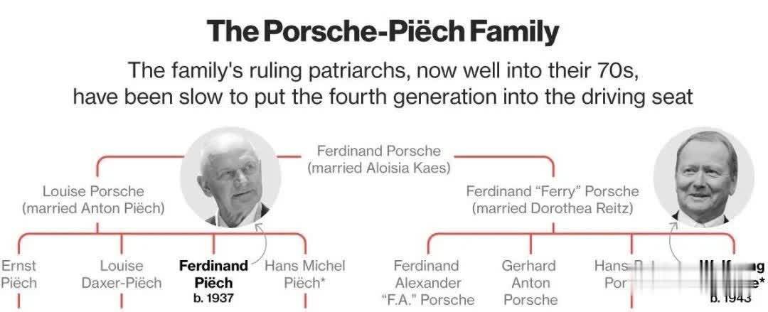 其实这个家族的全称,应该叫保时捷-皮耶希家族Porche-Piëch Family。为啥有「皮耶希」这个姓氏,和一场婚姻有关。