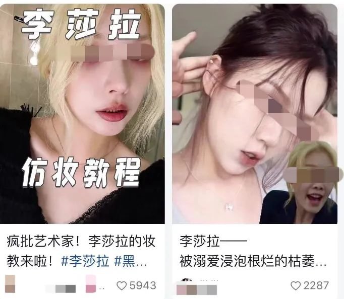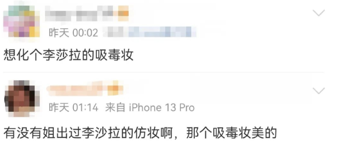 打开任意一条仿妆李莎拉视频,评论区中都充斥着坚定维护“毒虫妆”的粉丝。