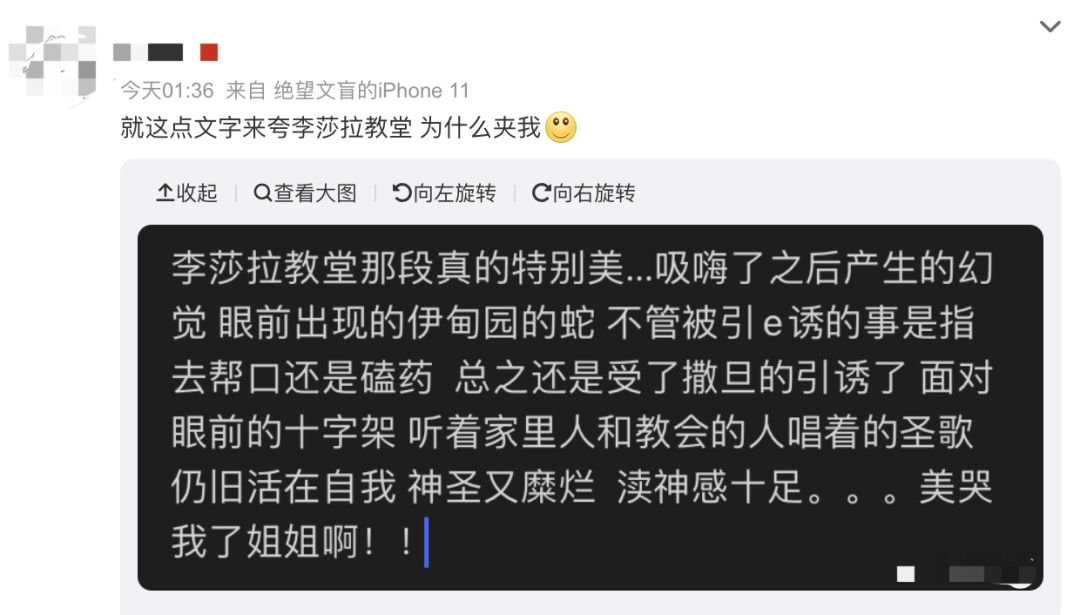 这幅模样,像极了《黑暗荣耀》中吸毒后的李莎拉。