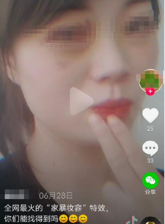 为了迎合家暴审美,各大app甚至制作出了家暴妆特效。