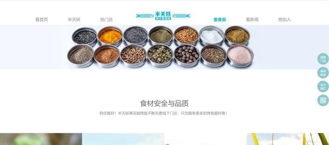 半天妖烤鱼在官网上还设有专门的“食材安全”界面。进入该界面,是半天妖烤鱼使用的“叉尾鮰鱼”“内蒙羊肉”以及“新鲜蔬菜”“五常大米”等各种食材种类的描述,无其他与食安相关的内容。