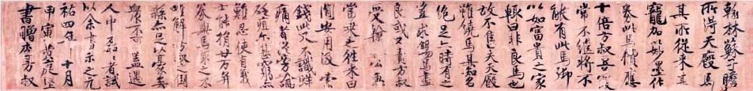 翰黄庭坚书苏东坡马劵后赠李方叔真迹卷林苏子瞻所得天马,其所从来甚宠,加以妙墨作劵,此马价应十倍,方叔豆羹常不继,将不能有此马,御以富贵之家,辄曰非良马也,固不售,失天虽饶马,其知名绝足亦持有之,岂求锡马尽良?或又责方叔受翰林公惠,当乘之往来田间,安用汲索钱?此又不识蛴痛者从旁论砭疽。尔甚穷亦难忍,使有义士能捐二十万并劵与马取之,不唯解方叔之倒县,亦足以豪矣。众不可,盖遇人中磊磊者试以余书示之?元祐四年十月甲寅黄庭坚书赠李方叔。