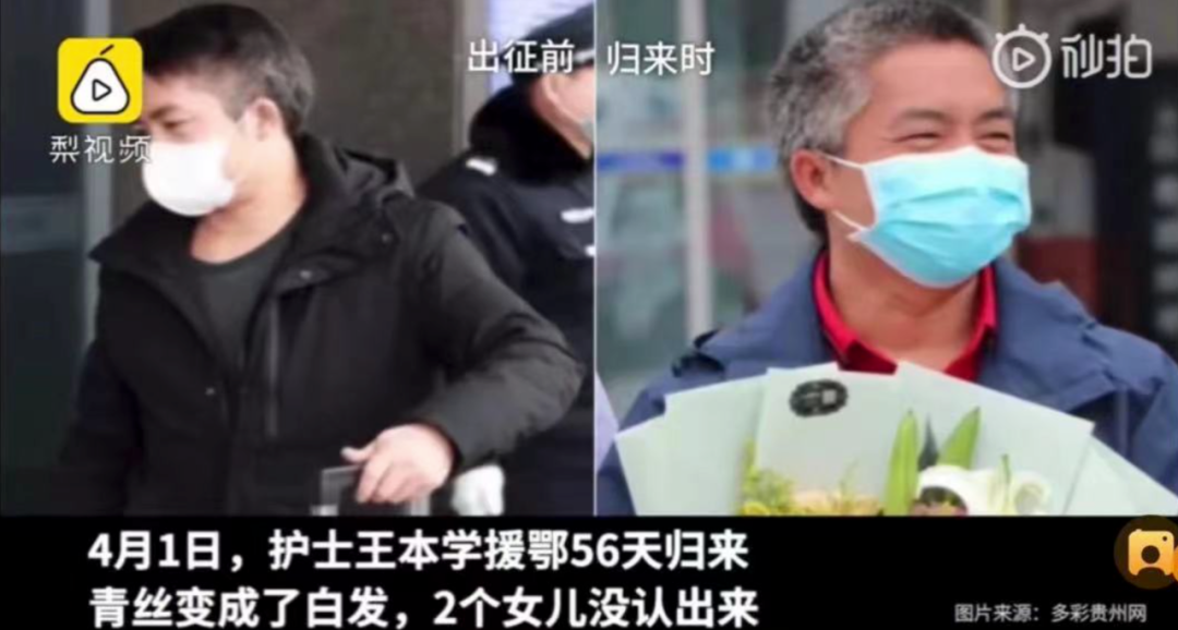 抗疫两个月,王本学一头乌黑的头发,全部变白。