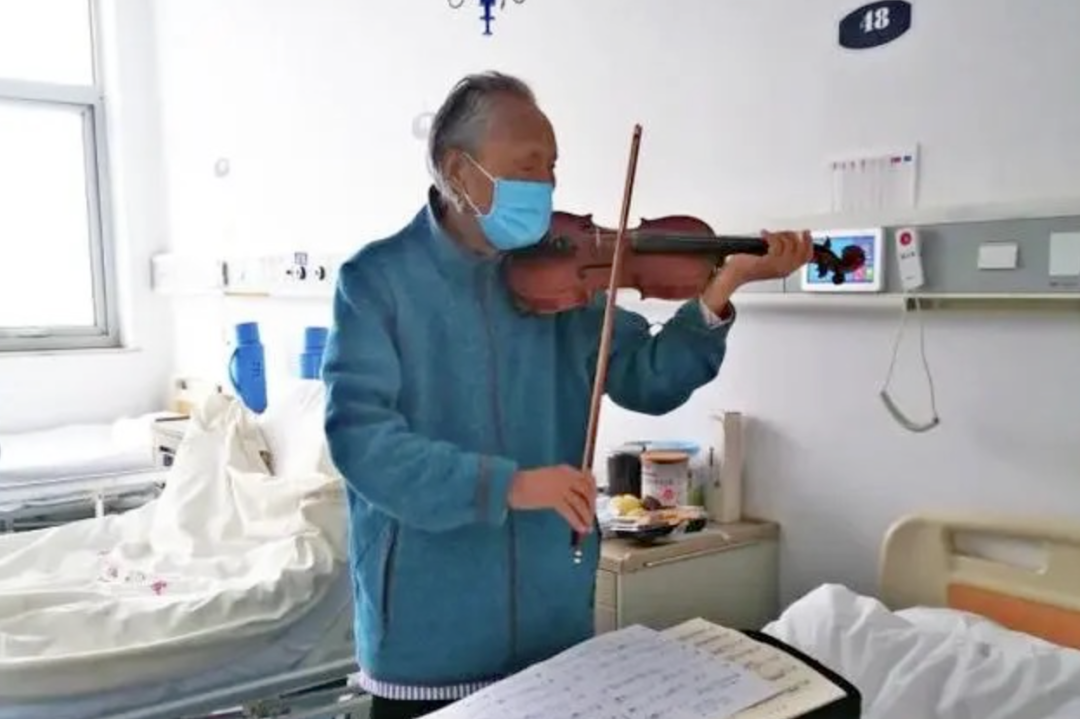 老人默默地拥抱他,拿出小提琴,为他们演奏了一曲送别。