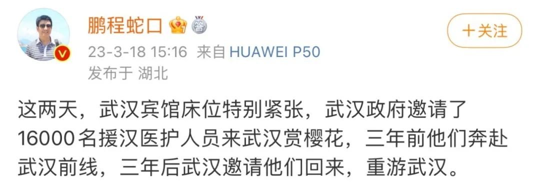 再到樱花盛开的季节,一定会邀请援鄂医疗队回来。